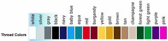 Mat Color navy blue tan black forest green gray burgundy Thread Color white silver gray black navy baby blue aqua red burgundy yellow gold brown tan champagne forest green light green purple pink
