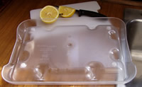 The OverBoard allows you to cut fish or the messiest meat without the mess and without slipping! The removable cutting board lies above a durable tray that holds a large amount of liquid and is easy to clean. OverBoard is made for no movement on most surfaces. Can be used on any surface without slipping.