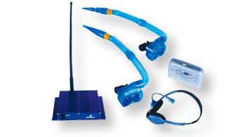 The Aqua FM PRO uses the same groundbreaking bone conduction technology used in the Aqua FM. It allows effective surface-to-swimmer communication. Through the use of a wireless transmitter constructed of a splash resistant housing, a user can talk to or transmit music and other recordings to swimmers and snorkelers.