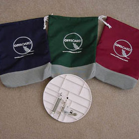 The 10 inch OFFBOARD� tote bag is made of durable nylon and a mesh bottom that allows water drainage if the discs are stored wet. There is an inside protective divider to keep the shields separated.